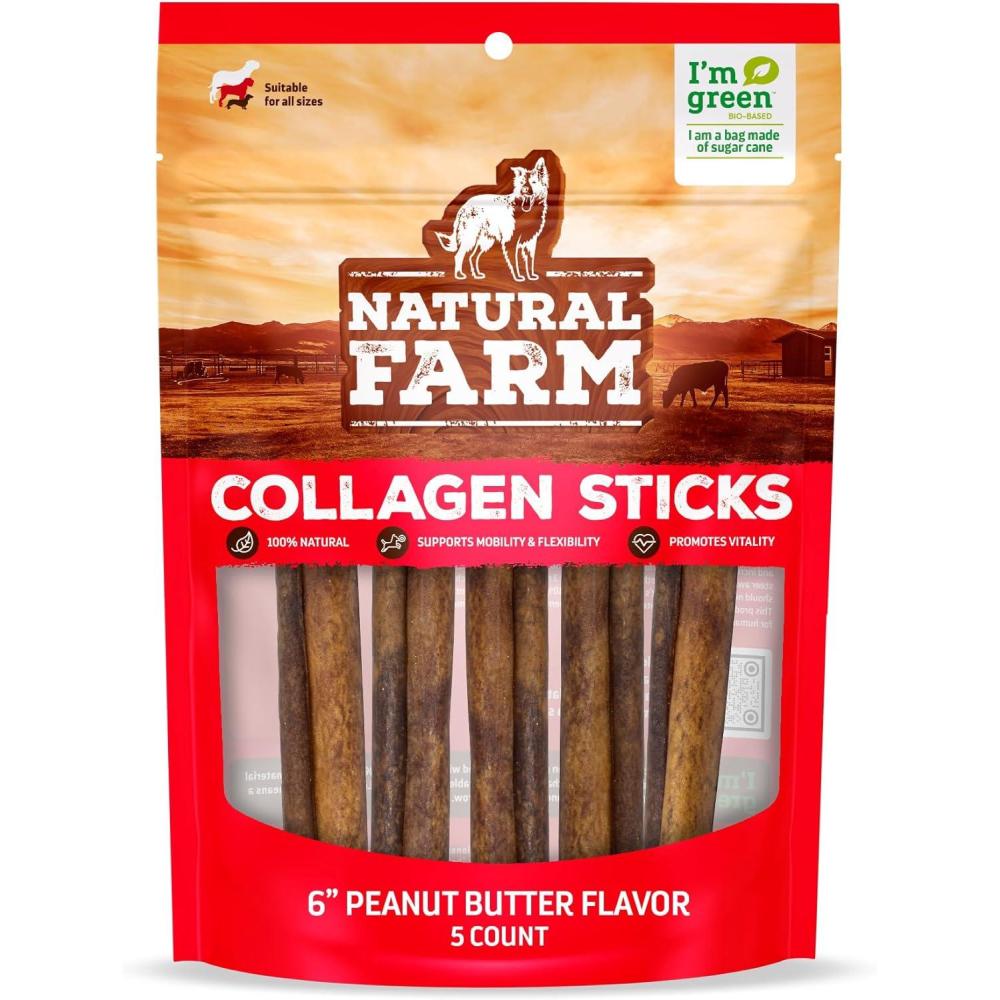 imageNatural Farm Bully Coated Gourmet Collagen Sticks 12 Inch 5 Pack Real Bully Beef Coated 95 Natural Collagen Supports Healthy Joints Skin ampamp Coat  Best for Small ampamp Medium DogsPeanut flavor 6 5 Pack