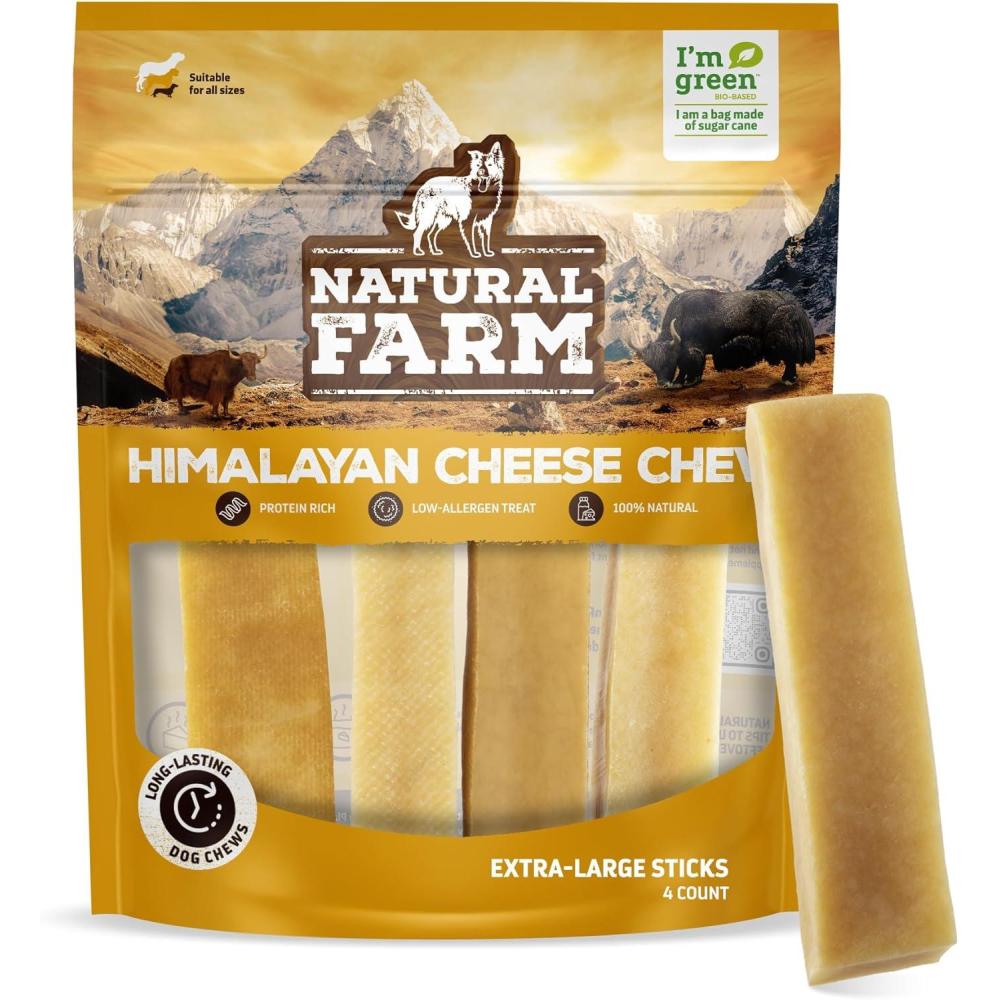 Natural Farm Himalayan Yak Cheese Chews, Protein-Rich, Low-Allergen, Lactose-Free, Gluten-Free, 100% Natural - Large, 4 Pack(Extra Large - 4 Pack)