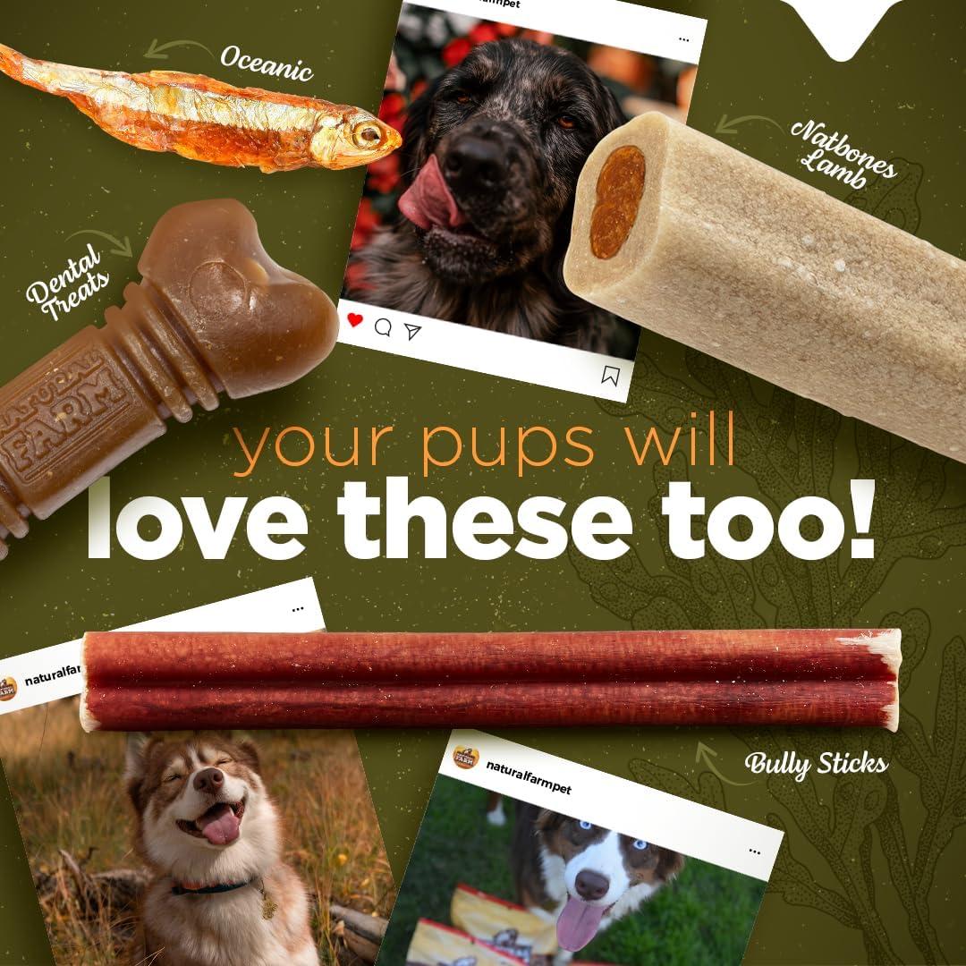 Natural Farm Pet is the tastier, healthier, and better choice of dog treats for your best friend. Our Dental Treats are crafted with all-natural ingredients for impeccable flavor & enjoyment! With limited ingredients including Vitamin B, D, collagen, and omega 3s, your pup is living well with Natural Farm! Your dog is your best friend. That’s why you want to give them the very best dog treats possible, especially when it comes to keeping them happy and healthy. We created the Natural Farm Pet Oceanic Line to ensure that your pet gets the highest-quality treats and ingredients possible while promoting overall joint, skin, and brain health. These treats are perfect for dogs of all shapes and sizes and offer a healthier choice for your dog to snack on. Healthy Dogs, Better Products Here at Natural Farm Pet we care as much about your four-legged friend as you do. We also care about the environment. That’s why the majority of our packaging is made using renewable sugar cane to reduce our use of traditional plastics made from fossil fuels.